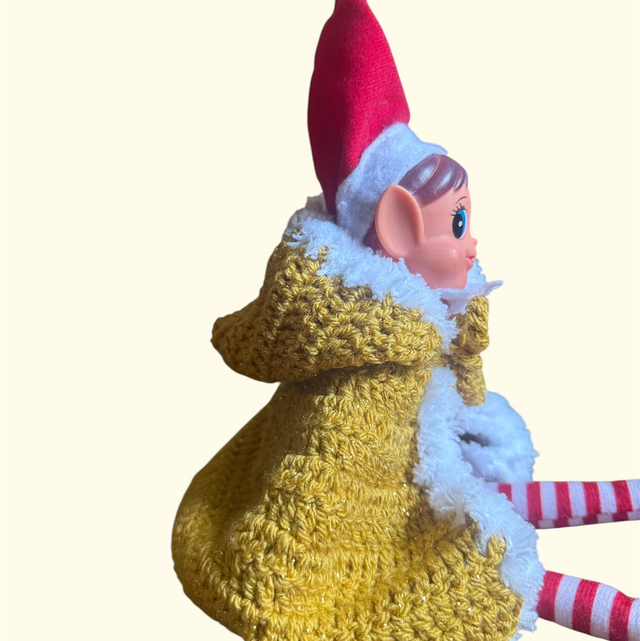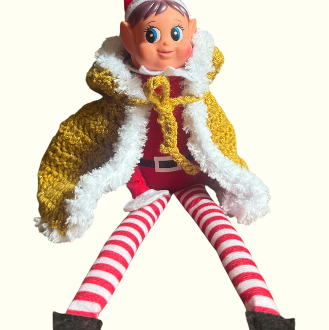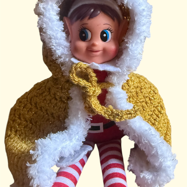 Transformez votre lutin farceur en véritable messager du Pôle Nord grâce à cette somptueuse cape crochetée à la main, bordée de douce fausse fourrure blanche.
